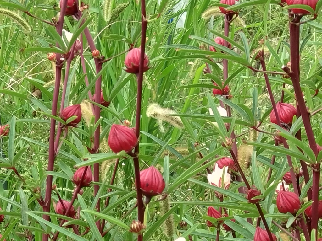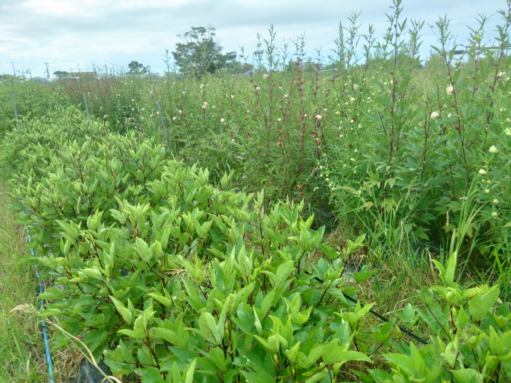 高知龍馬空港の近くに圃場がある吉本さんのローゼルが収穫期を迎えています。