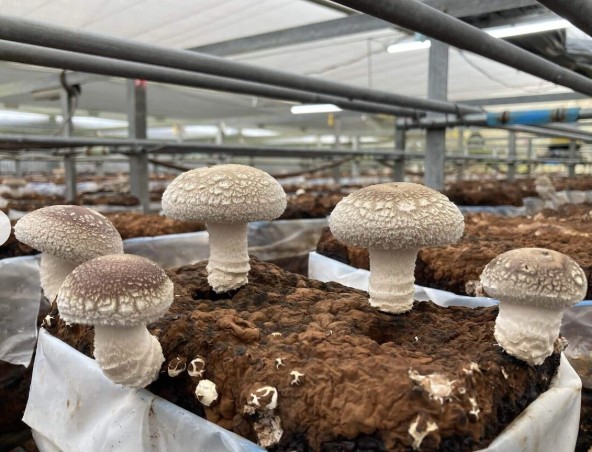 もぐもぐファームさんのだるましいたけの圃場を訪問。